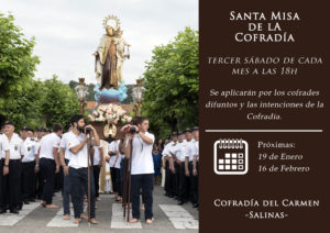 La Misa de las 18:00h del tercer sábado de cada mes será la Misa propia de la Cofradía.
