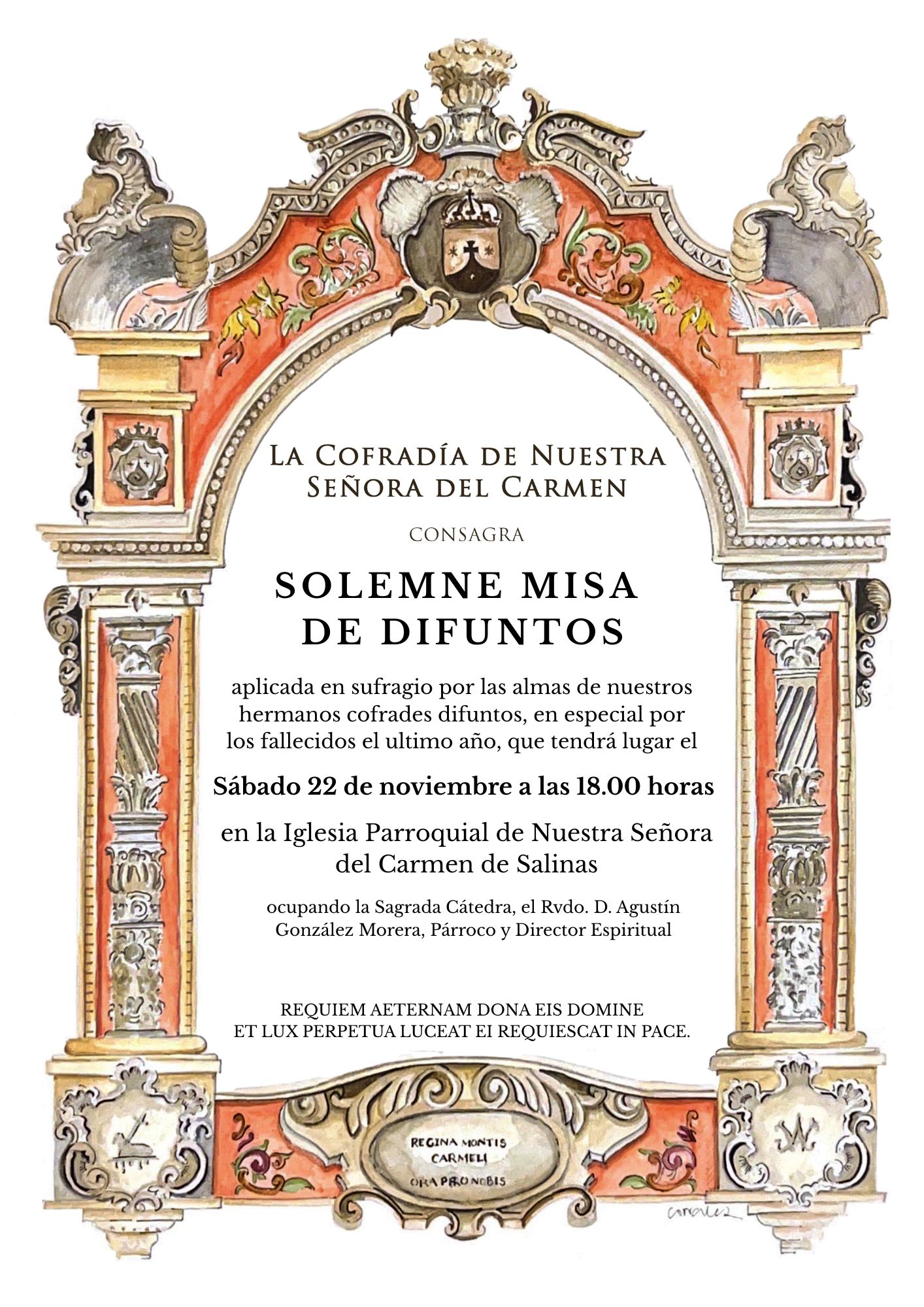 Se consagra Solemne Misa por los hermanos cofrades difuntos, en especial, por los fallecidos durante el último año, el sábado 22 de noviembre a las 18:00 horas.